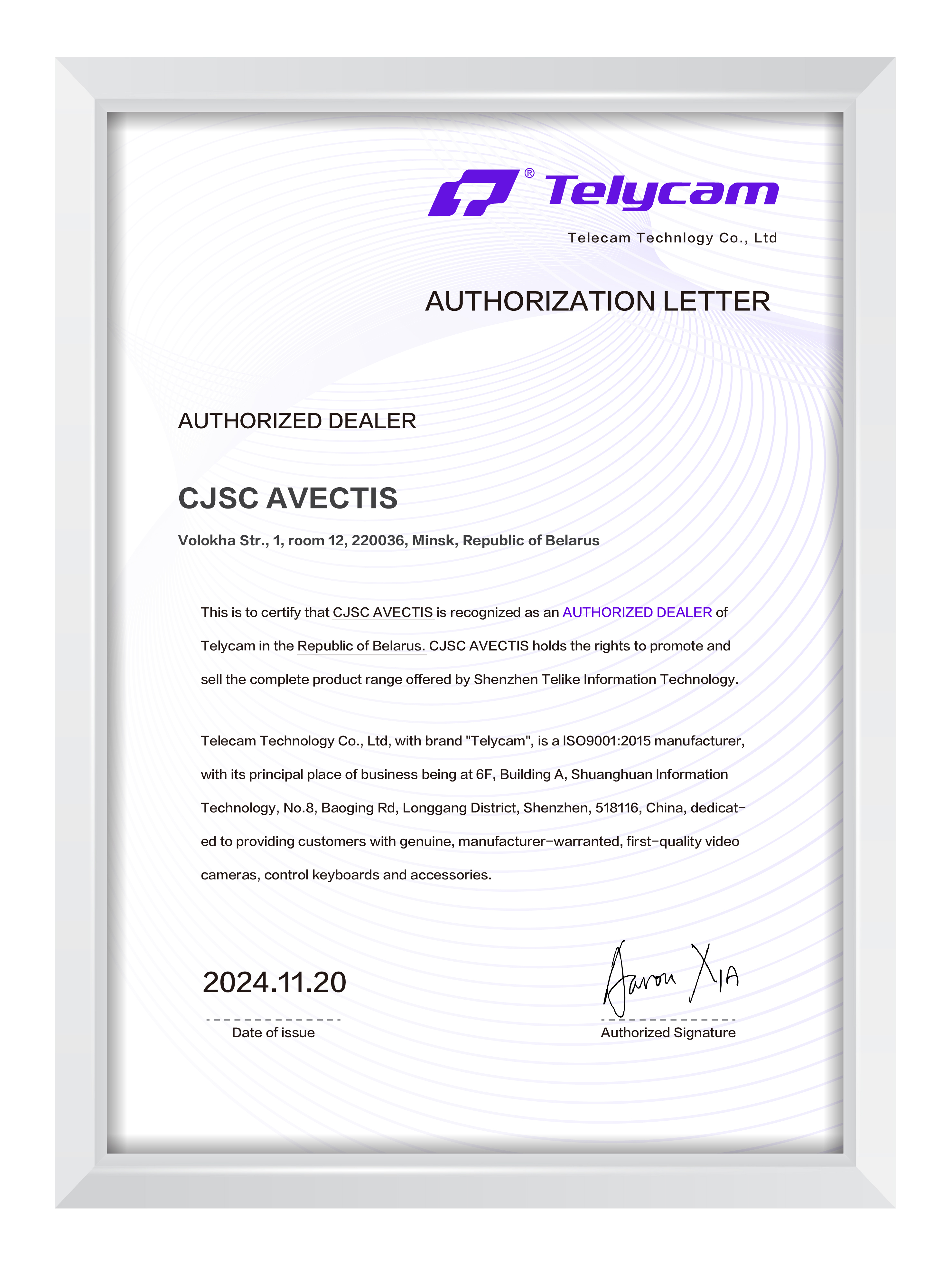 Полученный статус авторизированного партера Telycam позволит ЗАО «АВЕКТИС» предоставлять заказчикам передовые решения для организации эффективных видеоконференций, потоковых трансляций и совместной работы.