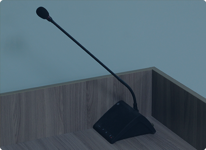 В одном из помещений на столе заседаний и трибуне были установлены микрофонные пульты для конгресс-системы Shure. Ядром системы стал центральный модуль управления, а для зала предусмотрен комплект различных радиомикрофонов. Кроме того, был организован синхронный перевод. Для этого в кабинках переводчиков установлены микрофонные пульты. Обработанный сигнал передается на беспроводные приемники с помощью ИК излучателей.