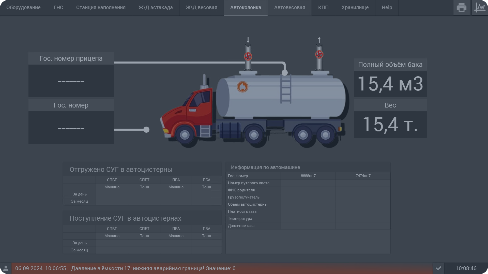 - регистрация и интеграция процесса приема газа по весу с системой 1С